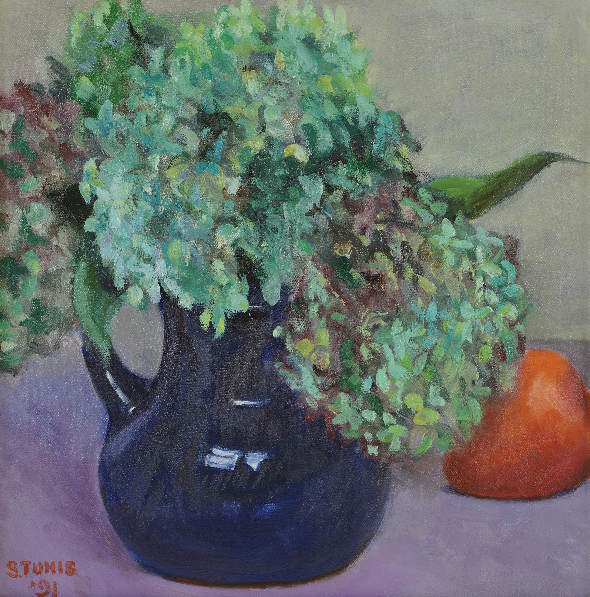Fabulous blue vase with gorgeous hydrangeas. Painting done in 1991. 12" x 12" framed. Such a calming and pretty work.