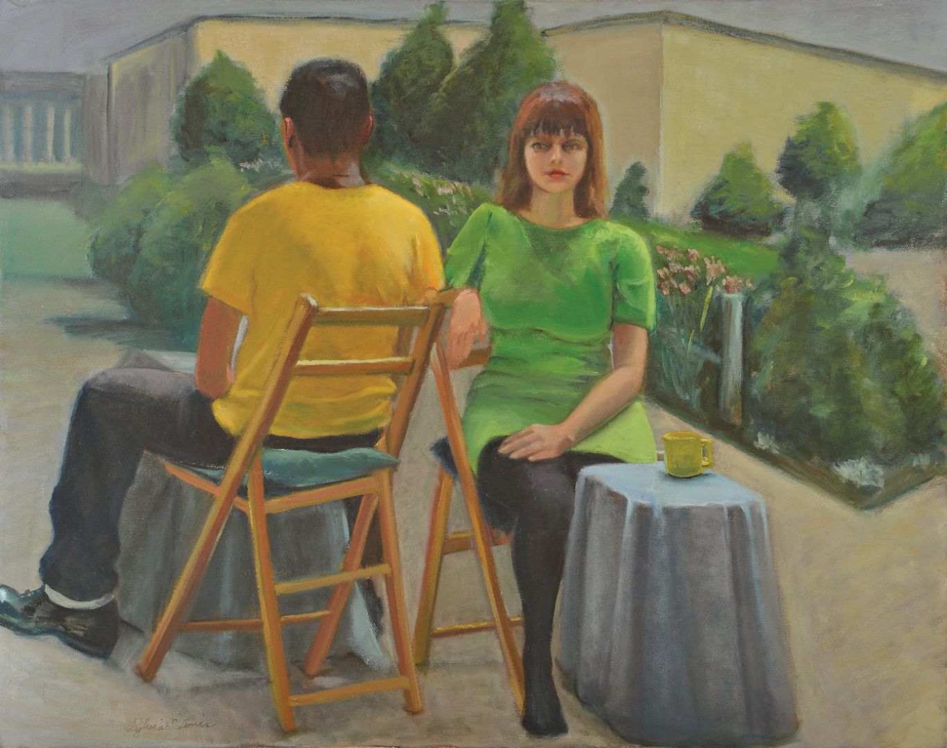 Measuring 28" x 22" this colorful work of friends back to back is intriguing. Circa 2000.