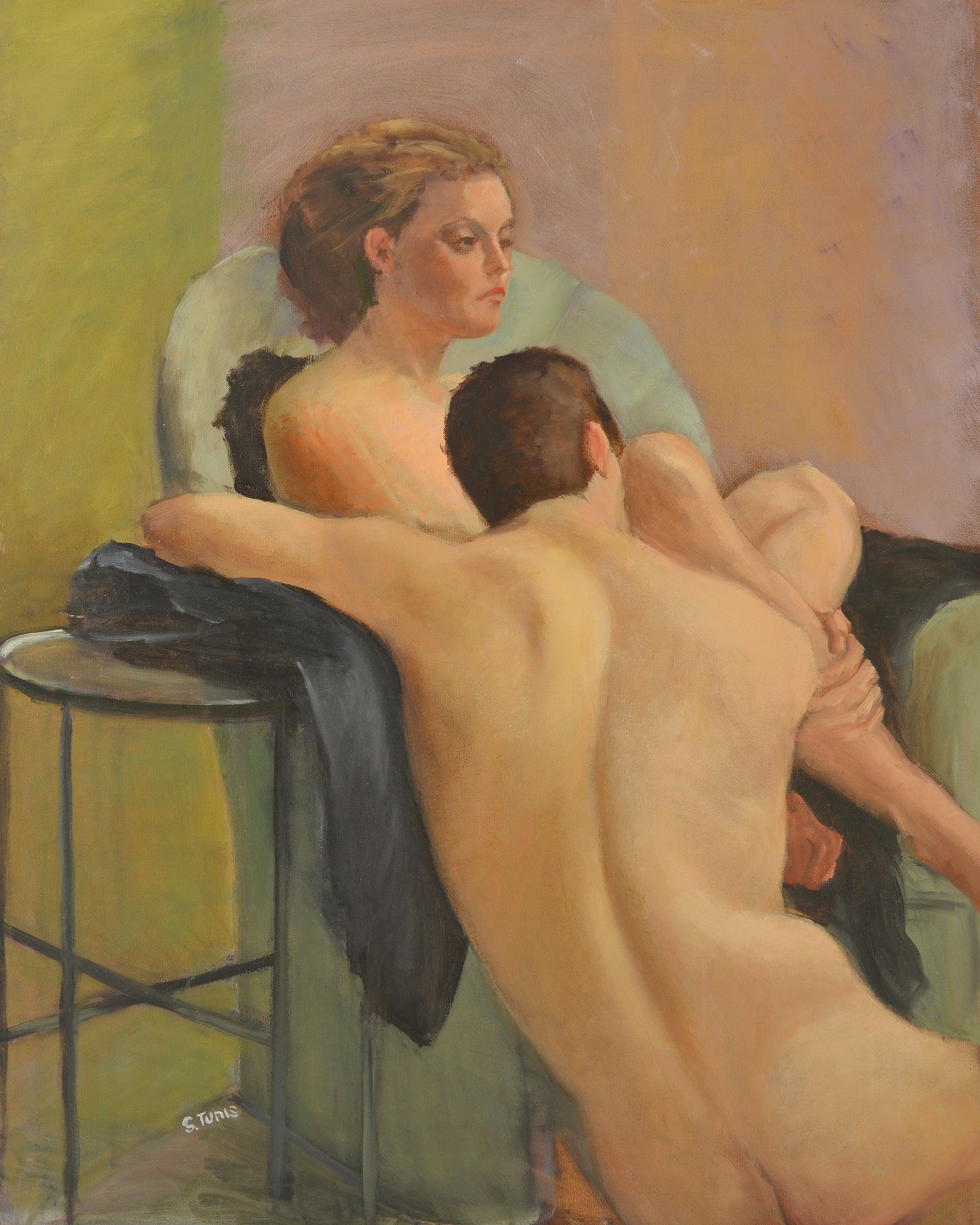 This work, circa 1989, portrays the sinewiness of the back of a male lover.