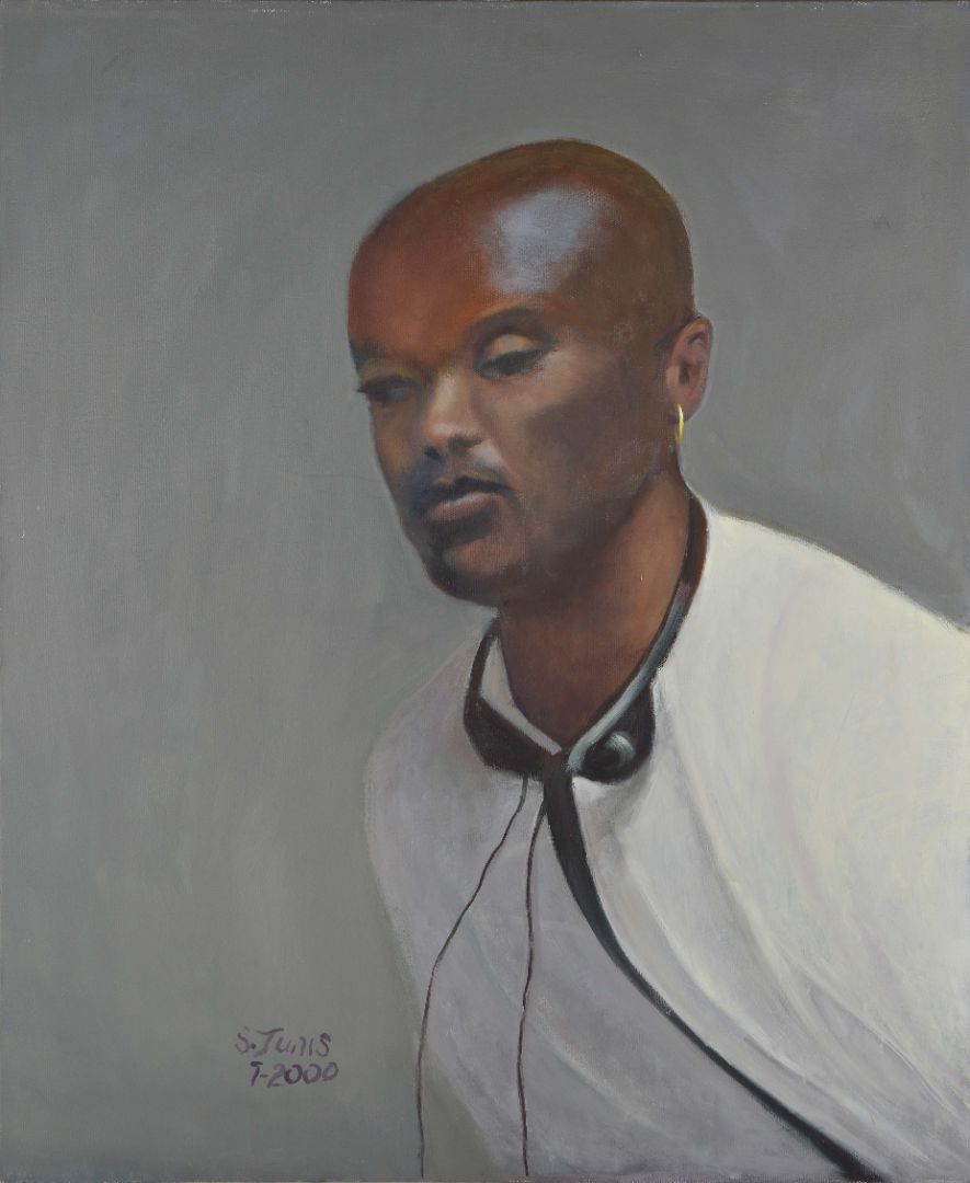 Painted in 2000, this work shows a man with headphones wearing an earing. 20" x 24".