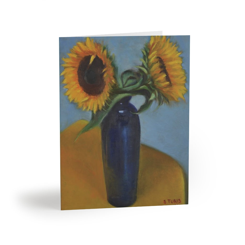 Greeting Cards (8 pcs) - Sunflowers in Blue Vase