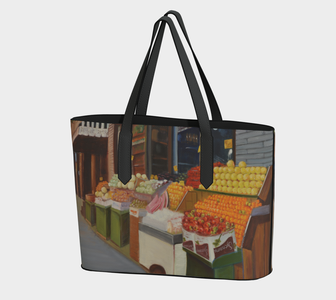 This gorgeous Farm To Table, printed vegan leather tote bag "Fruit Stand" is perfect for your busy or your simple life!