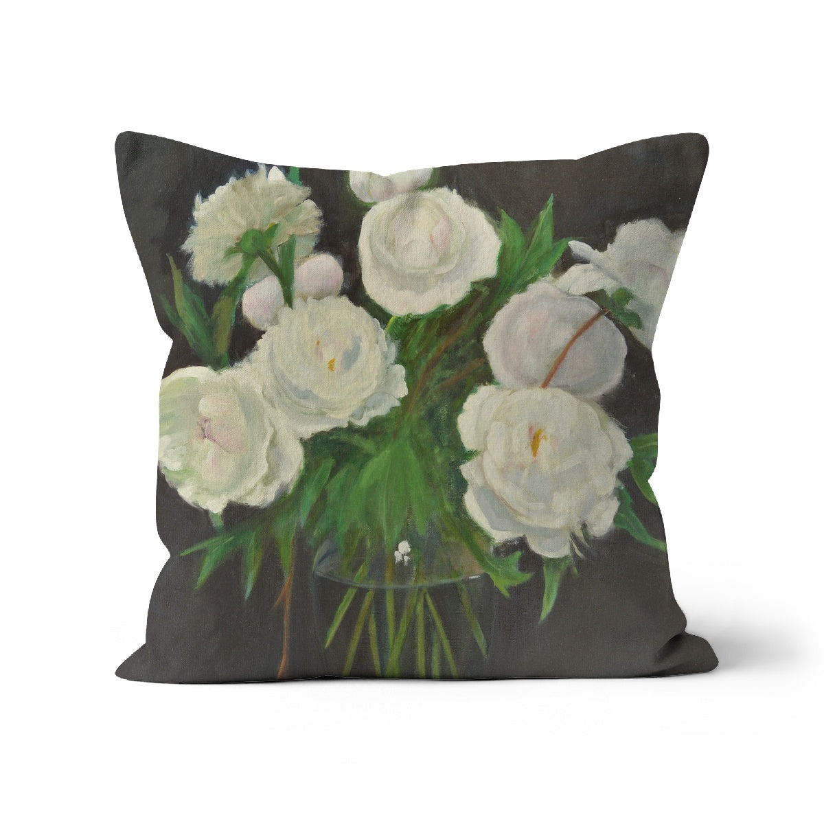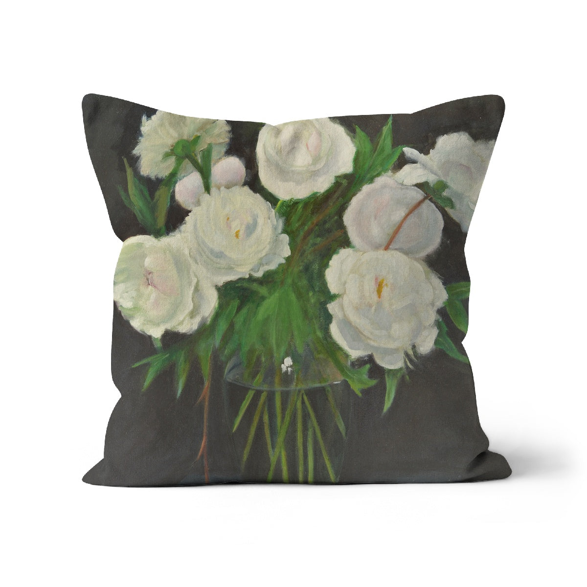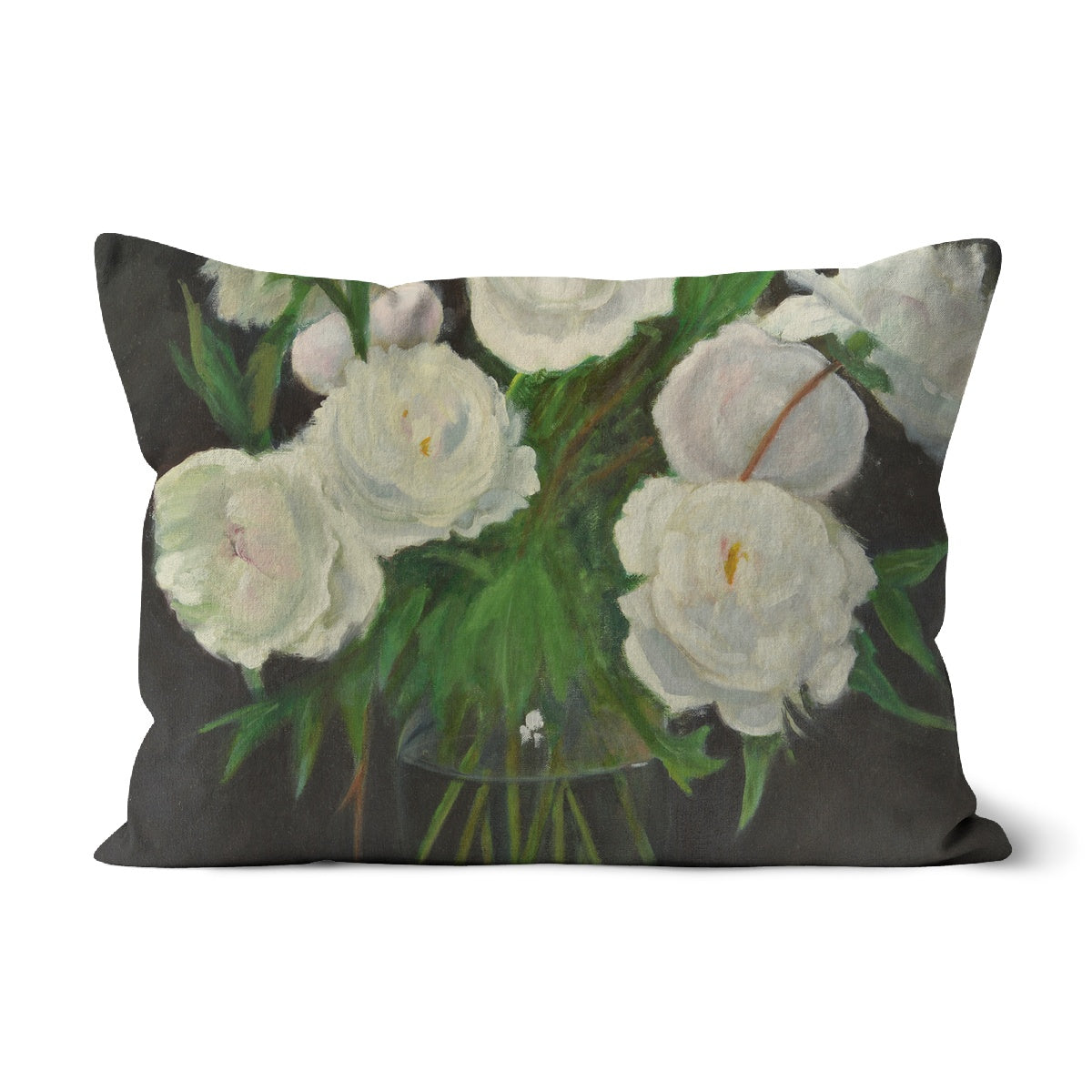 White Peonies in Glass Vase Cushion
