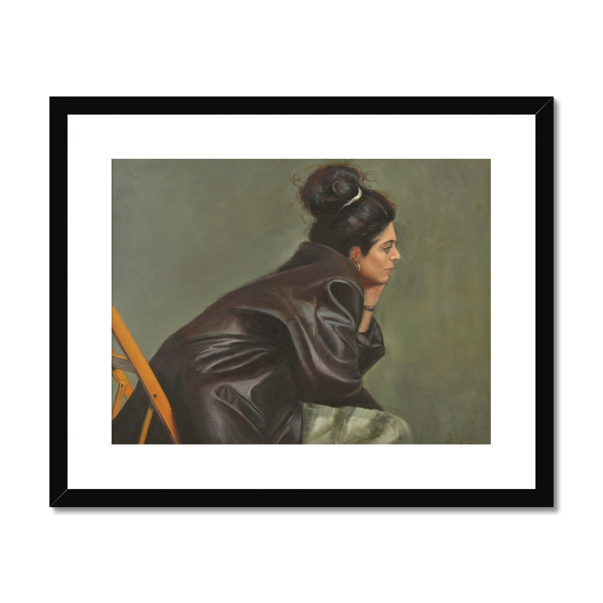 Woman in Brown Leather with Bun Framed & Mounted Print