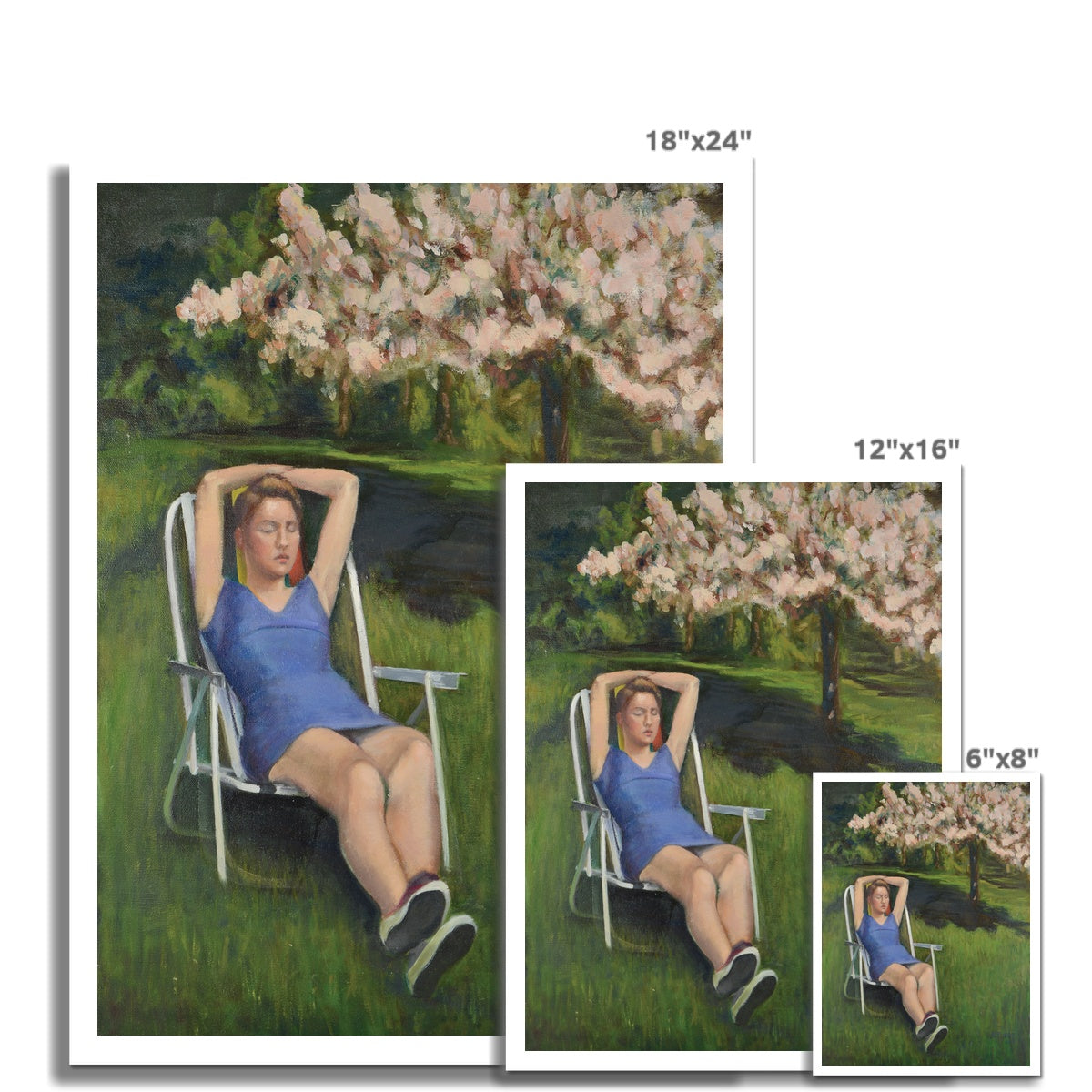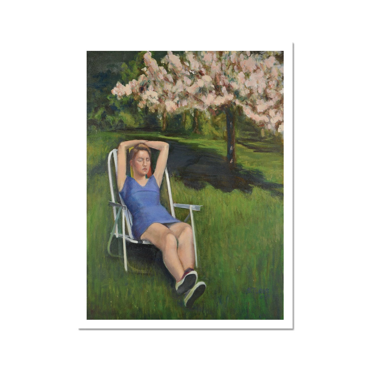 Woman on Lawn with Cherry Blossoms Fine Art Print