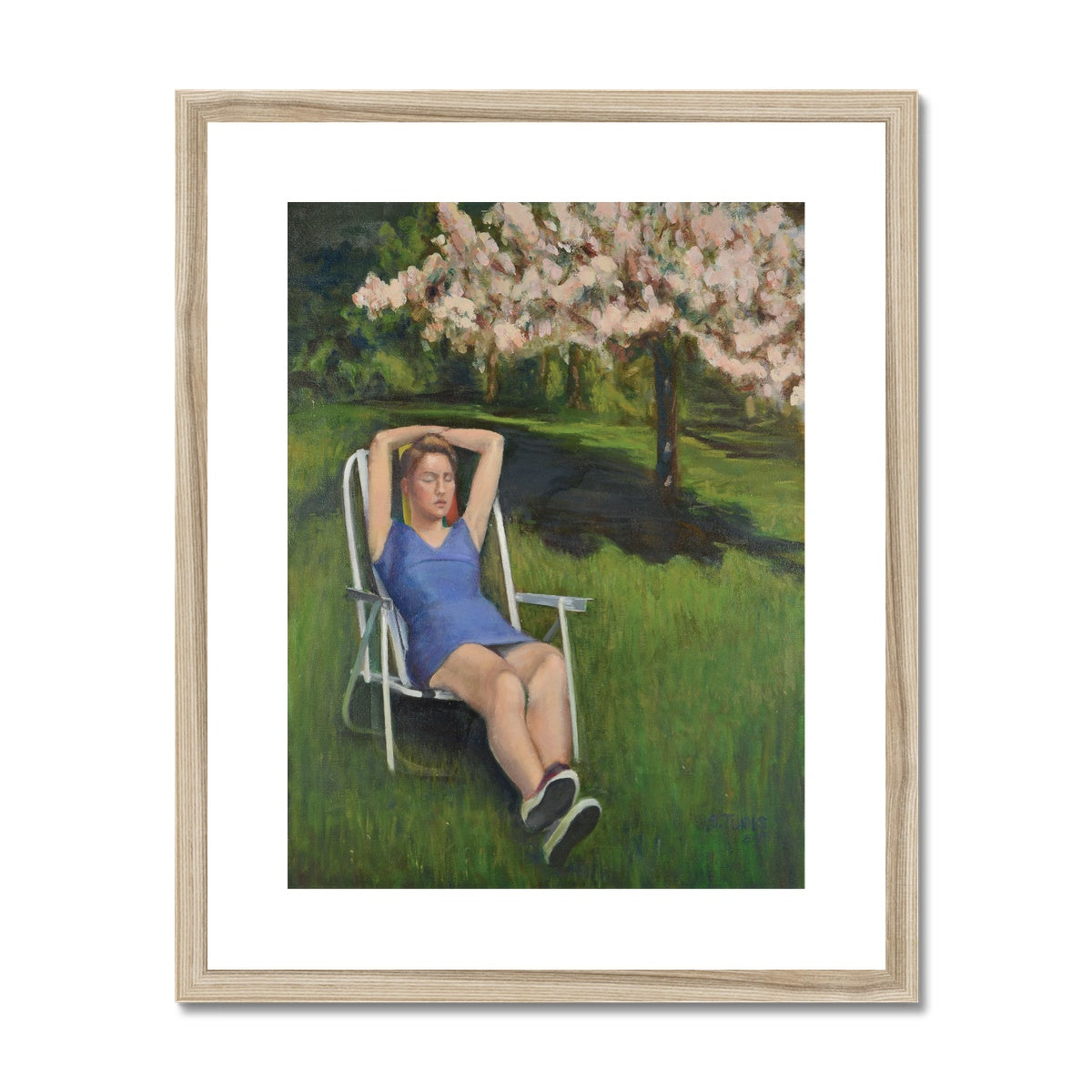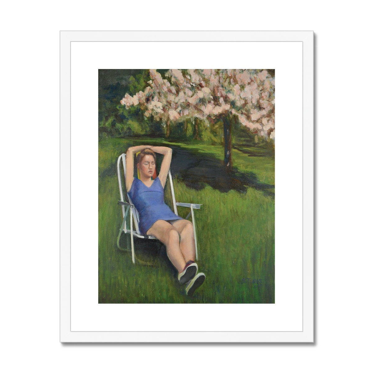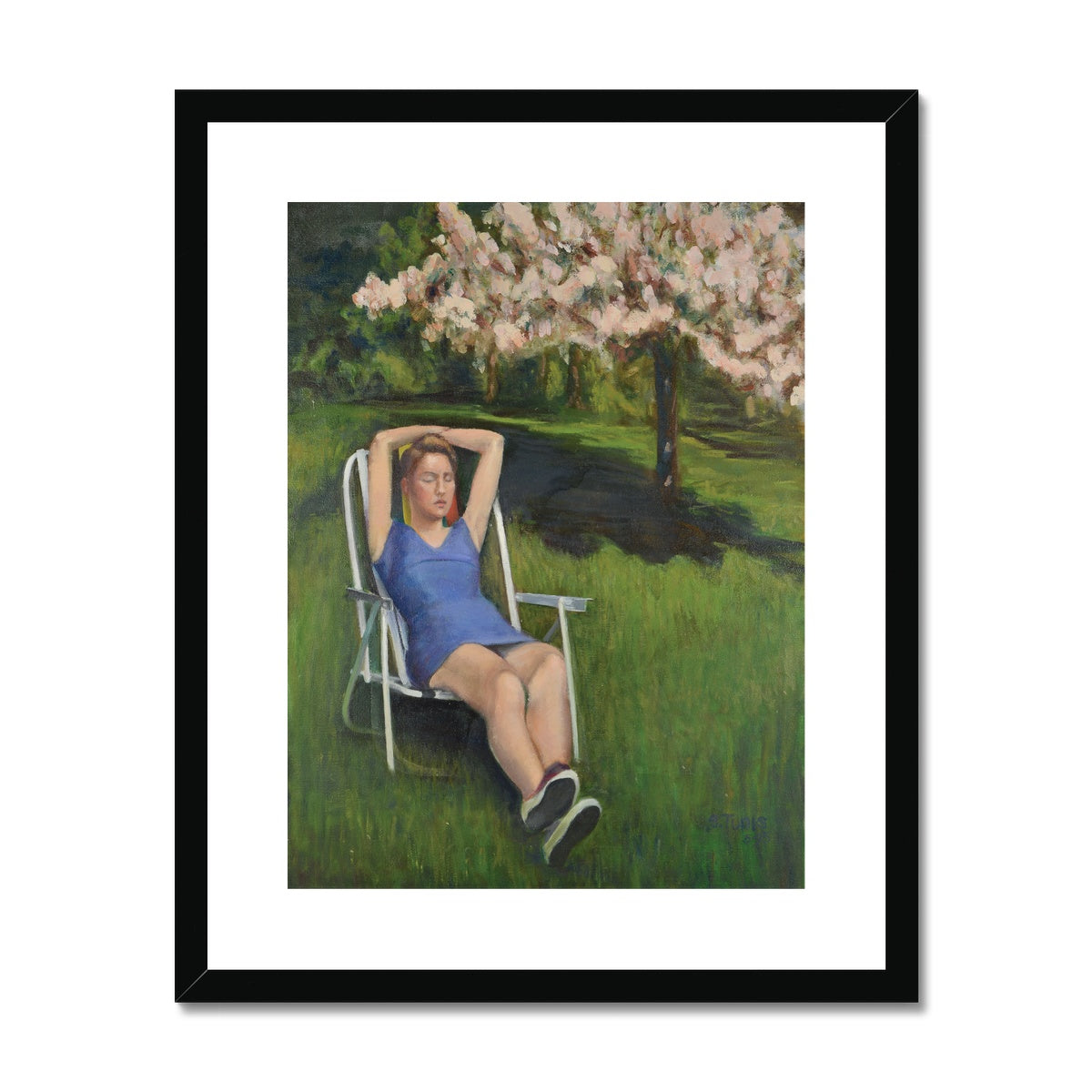 Framed Print - Woman on Lawn with Cherry Blossoms
