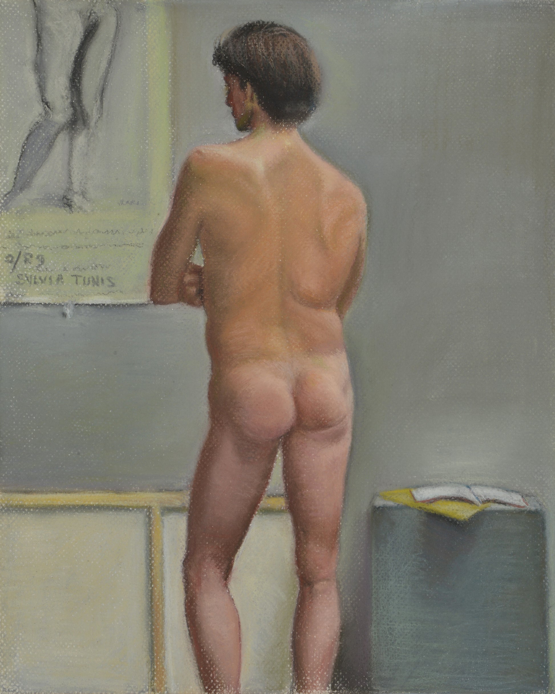 Young Man Nude From the Back with Poster, Pastel